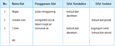 Apabila kita berselimut kain wol badan kita menjadi hangat. Alumunium dipakai untuk perkakas rumah tangga misalnya. Buatlah daftar alat alat dapur dan alat alat rumah tangga yang memanfaatkan sifat konduktor dan sifat isolator yang ada di rumahmu. Materi konduktor dan isolator contoh benda konduktor dan isolator yang ada di rumah alat rumah tangga yang bersifat konduktor dan isolator.