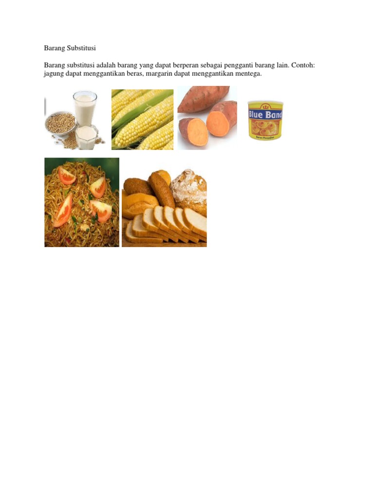 Di mana barter ini merupakan pertukaran antara barang dengan barang dan barang tersebut masing masing dibutuhkan oleh masyarakat. Karena memang pada hakikatnya barang mempunyai fungsi sebagai alat pemuas kebutuhan anda manusia. Barang substitusi merupakan barang pengganti yang dapat ditukar atau menggantikan barang lainnya tanpa kehilangan nilai atau penggunaan. Dengan kata lain barang substitusi adalah barang yang sebanding yang dapat ditukar dengan barang lain dengan sedikit atau tanpa perbedaan.