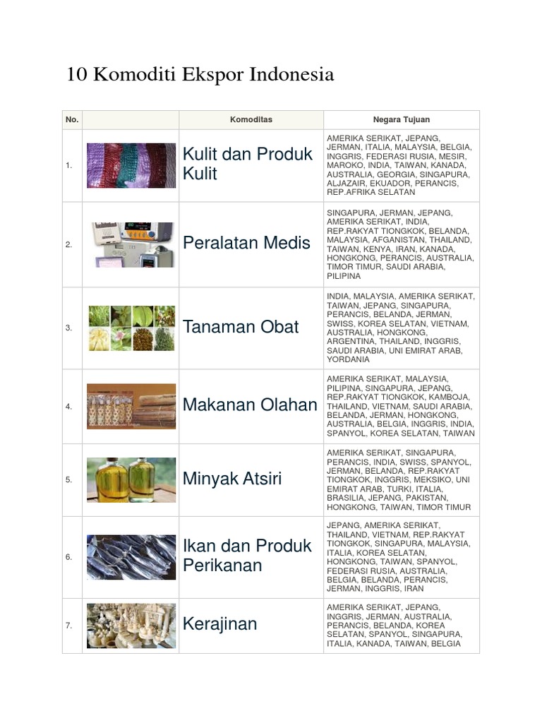 Perkembangan inilah yang menjadikan hubungan indonesia dengan negara tetangga cukup baik dalam kegiatan ekspor impor dan dalam postingan ini kami akan memberikan 10 contoh barang ekspor dan impor yang dilakukan oleh. Anda tentu tidak asing dengan kegiatan ekspor. Proses ekspor ini biasanya dilakukan oleh berbagai macam perusahaan mulai dari perusahaan bisnis kecil kecilan atau pun perusahaan dengan bisnis menengah. Karena pegaruh letak geografis ini indonesia merupakan salah satu negara yang perkembangan ekonominya cukup pesat.