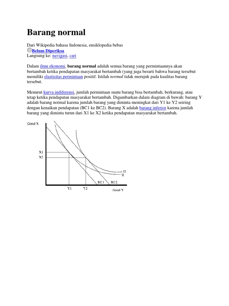 Barang inferior barang normal. Barang bekas yang diimpor dari luar negeri termasuk sebagai barang inferior. Barang inferior adalah barang yang jumlah permintaannya akan turun seiring dengan peningkatan pendapatan masyarakat salah satu contoh barang inferior adalah sandal jepit ketika tingkat pendapatan masyarakat rendah tingkat permintaan terhadap barang tersebut akan tinggi. Barang inferior adalah kebalikan dari barang normal yang mengalami peningkatan permintaan seiring dengan peningkatan tingkat pendapatan. Barang inferior ialah kebalikan dari barang normal yang mengalami peningkatan permintaan seiring dengan peningkatan tingkat pendapatan.