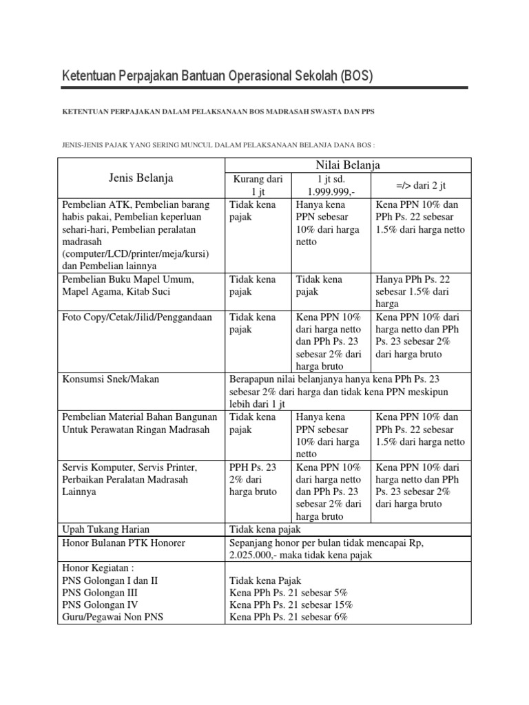 Aturan pajak dana bos 2020 kwi kurang 2 jt tidak kena ppn 231 pmk 03. Bendahara bos bantuan operasional sekolah merupakan seorang bendahara yang ditunjuk dan ditetapkan oleh pemerintah serta berada di lingkungan sekolah. Apa saja jenis barang barang tersebut dan apa saja kategorinya. Adalah pajak atas konsumsi barang dan atau jasa di dalam daerah pabean.