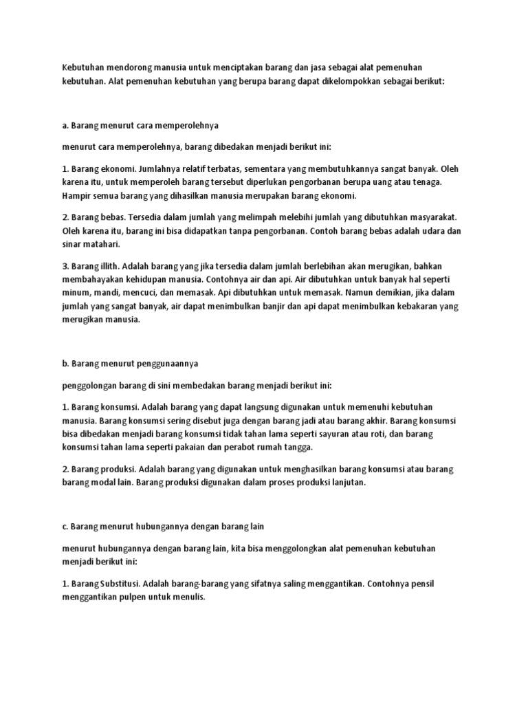 Barang produksi dan barang konsumsi merupakan alat pemuas kebutuhan yang dikelompokkan meenurut. Seperti pakaian makanan minuman dan masih banyak lagi. Hubungannya dengan barang lain c. Barang produksi dan barang konsumsi merupakan alat pemuas kebutuhan yang 22947879 1. 1 barang barang dapat diartikan berupa segala sesuatu yang berwujud dapat dilihat dan diraba misalnya perabotan rumah tangga perlengkapan sekolah perlengkapan elektronik dan lain lain.