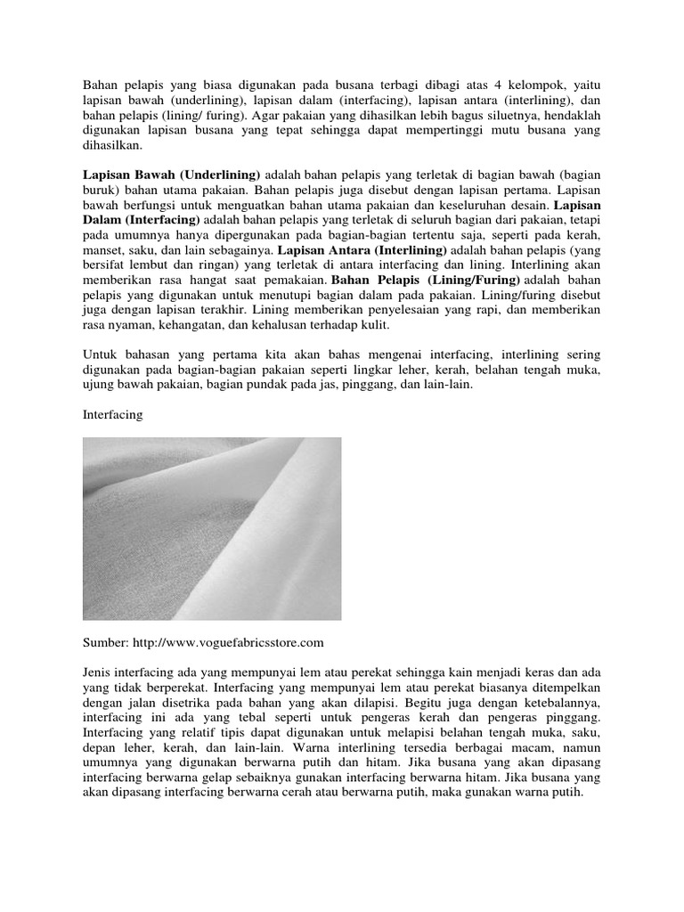 Kami memiliki database lebih dari 122 ribu. Sehingga para sahabat bisa mengerti dan memahami soal dan jawaban tts yang kami posting untuk anda. Barang barang perabotan penutup tempat tidur seprai selimut dekorasi jendela pelapis jok dan sebagainya. Dalam pembuatan busana bahan pelapis digolongkan menjadi 4 jenis yaitu lapisan bawah underlining lapisan dalam interfacing lapisan antara interlining dan bahan pelapis lining yang biasa disebut furing lining.