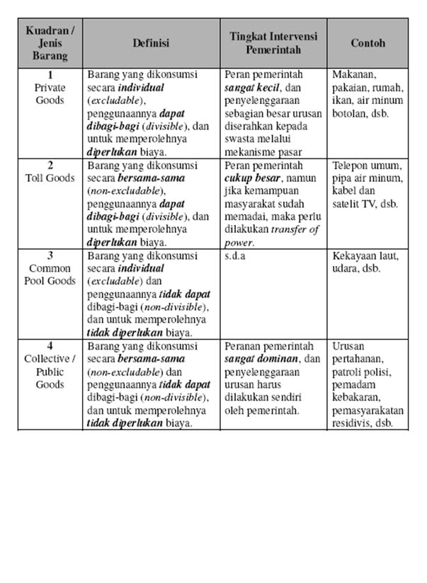 Kategori barang jasa publik adalah. Barang publik didapatkan secara gratis dan tidak membutuhkan usaha tertentu untuk mengaksesnya. Barang berwujud murni penawaran yang hanya terdiri atas barang berwujud seperti sabun pasta gigi atau pensil. Saat ini keberhasilan bisnis terletak pada kombinasi kualitas barang yang terbaik dengan layanan jasa yang berorientasi pada pelanggan. Karakter pengadaan barang jasa pemerintah yang notabene kategori pengadaan publik sering membuat pengelola bumd kerepotan untuk mengantisipasi dinamika usaha yang melekat pada sebuah badan usaha.