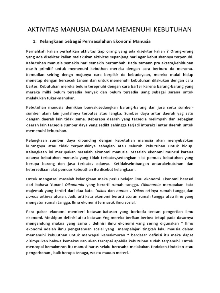 Kebutuhan Manusia Terhadap Barang Dan Jasa Jumlahnya Tidak Terbatas