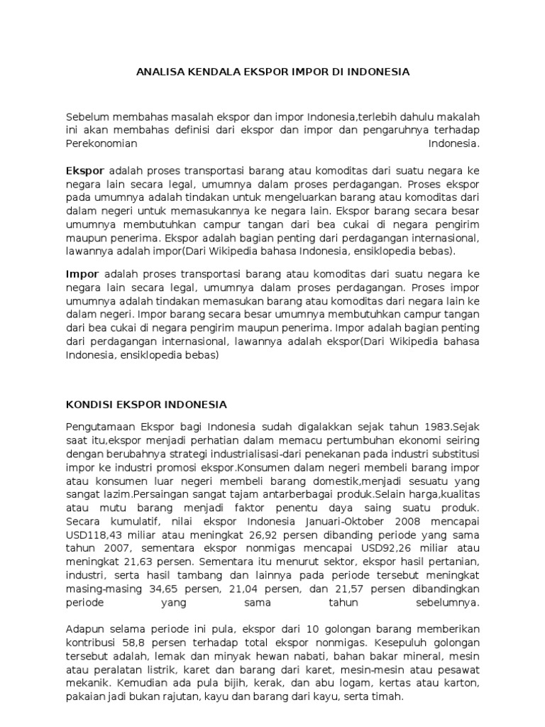 Impor ialah suatu proses pembelian mendatangkan barang atau jasa negara lain masuk ke dalam negeri. Barang modal adalah barang yang digunakan untuk modal usaha seperti mesin suku cadang komputer pesawat terbang dan alat alat berat. Selanjutnya komoditas ekspor nonmigas terbesar ketiga adalah pakaian jadi yakni senilai us 7 33 miliar. Adapun negara negara importir produk hasil kehutanan atau yang berbahan dasar kayu yang berasal dari indonesia antara lain china jepang arab saudi libya qatar jerman belanda dan amerika serikat.