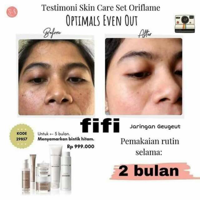 Produk oriflame buat flek hitam. Pijat perlahan lahan di area wajah dengan ujung jari anda selama beberapa menit. Untuk perawatan wajah dengan formula ringan bisa gunakan pembersih wajah dan krim pelembab essentials. Produk ini berasal dari swedia dan pertama kali berdiri tahun 1967. Oriflame adalah sebuah perusahaan kecantikan terkemuka dengan sistem penjualan langsung.