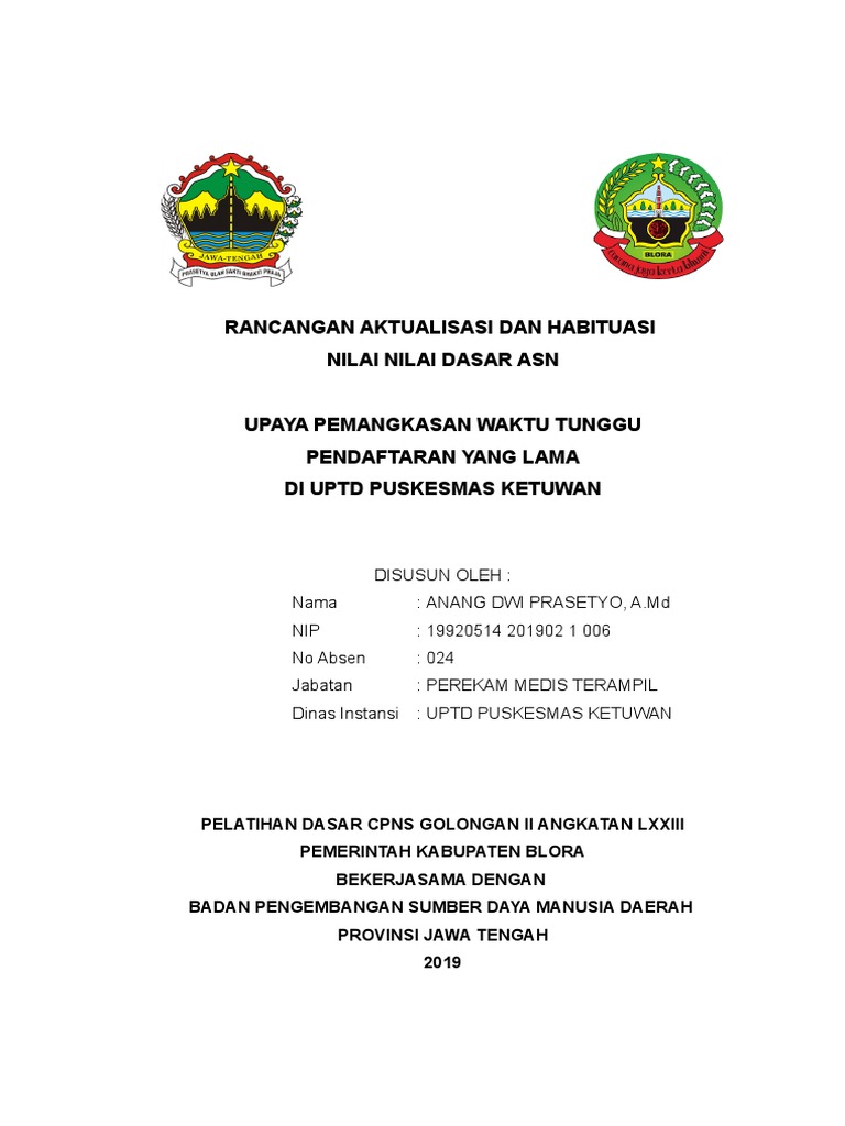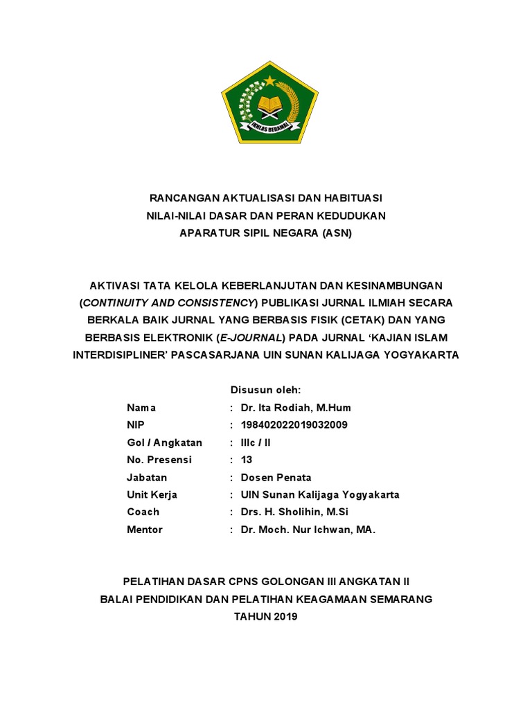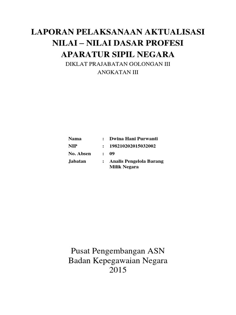 Kegiatan aktualisasi nilai nilai dasar aparatur sipil negara ini akan dilaksanakan di upt sd negeri 1 enrekang kelurahan juppandang kecamatan enrekang kabupaten enrekang. Contoh rancangan aktualisasi 1. 1 rancangan aktualisasi akuntabilitas nasionalisme etika publik komitmen mutu dan anti korupsi pada sub bagian umum dan kepegawaian badan pelaksana penyuluhan pertanian perikanan dan kehutanan kabupaten pringsewu oleh. Dalam rangka menunjang pengelolaan aset tersebut maka pemerintah melakukan pembangunan regulasi dan memodernkan kebijakan dengan dikeluarkannya peraturan pemerintah nomor 6 tahun 2006 tentang pengelolaan barang milik negara daerah.